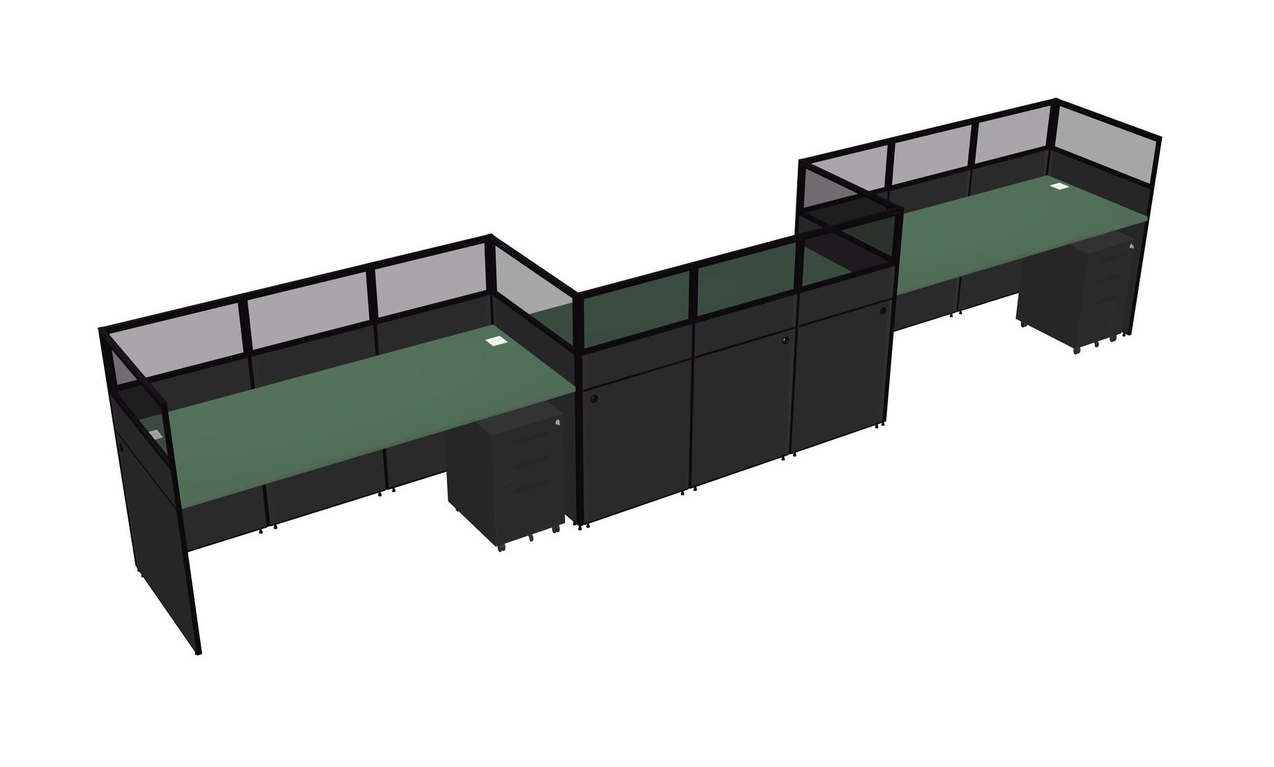 Green Rectangular Cubicle Workstations For 3 - Zigzag Formation + Black Metal Mobile Drawers