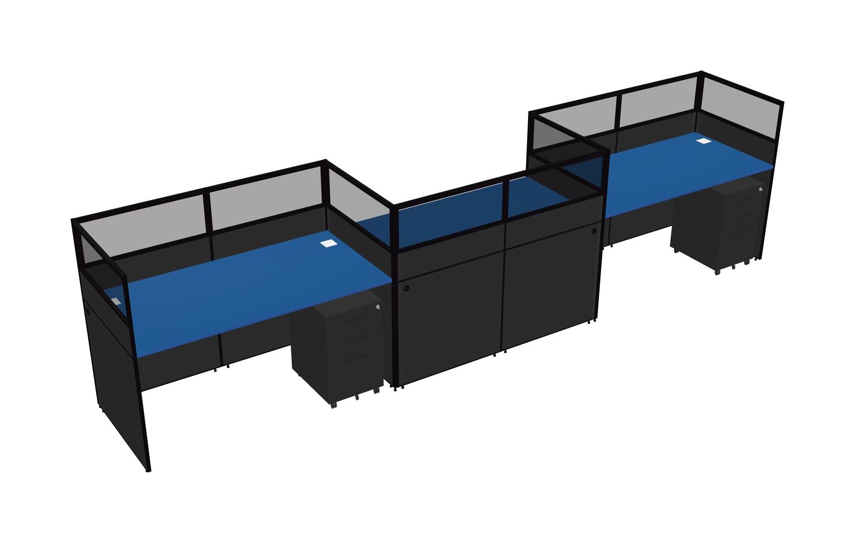 Prism Blue Rectangular Cubicle Workstations For 3 - Zigzag Formation + Black Metal Mobile Drawers