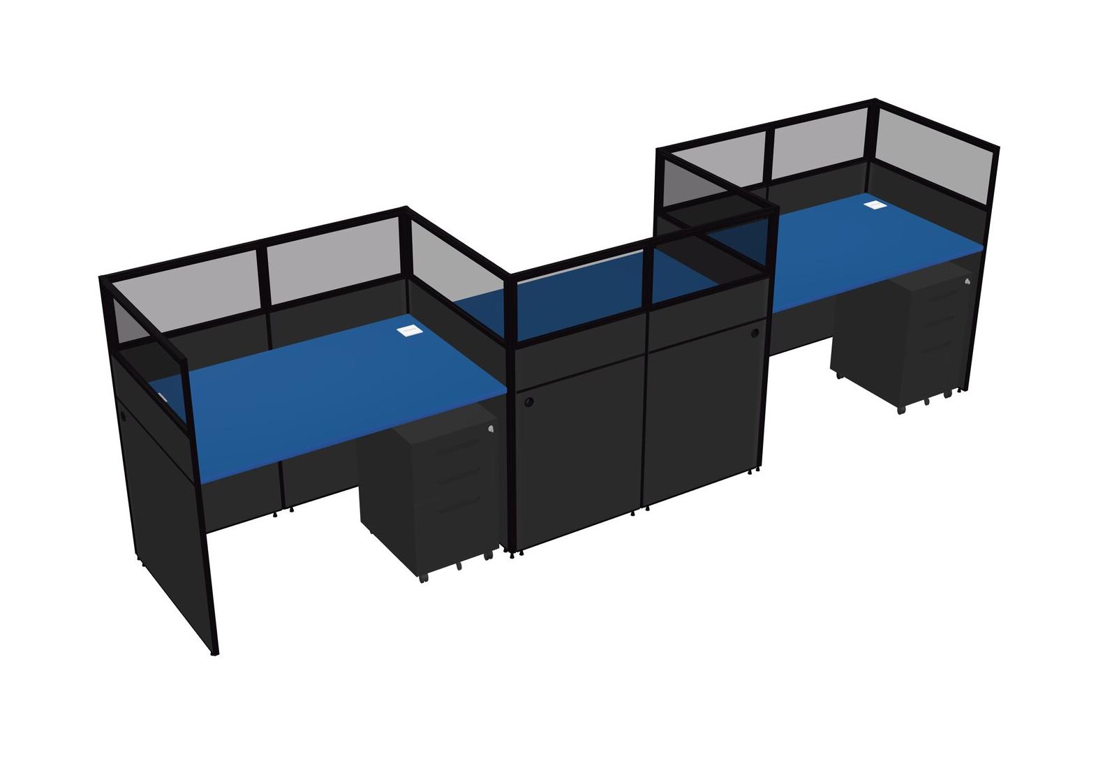 Prism Blue Rectangular Cubicle Workstations For 3 - Zigzag Formation + Black Metal Mobile Drawers
