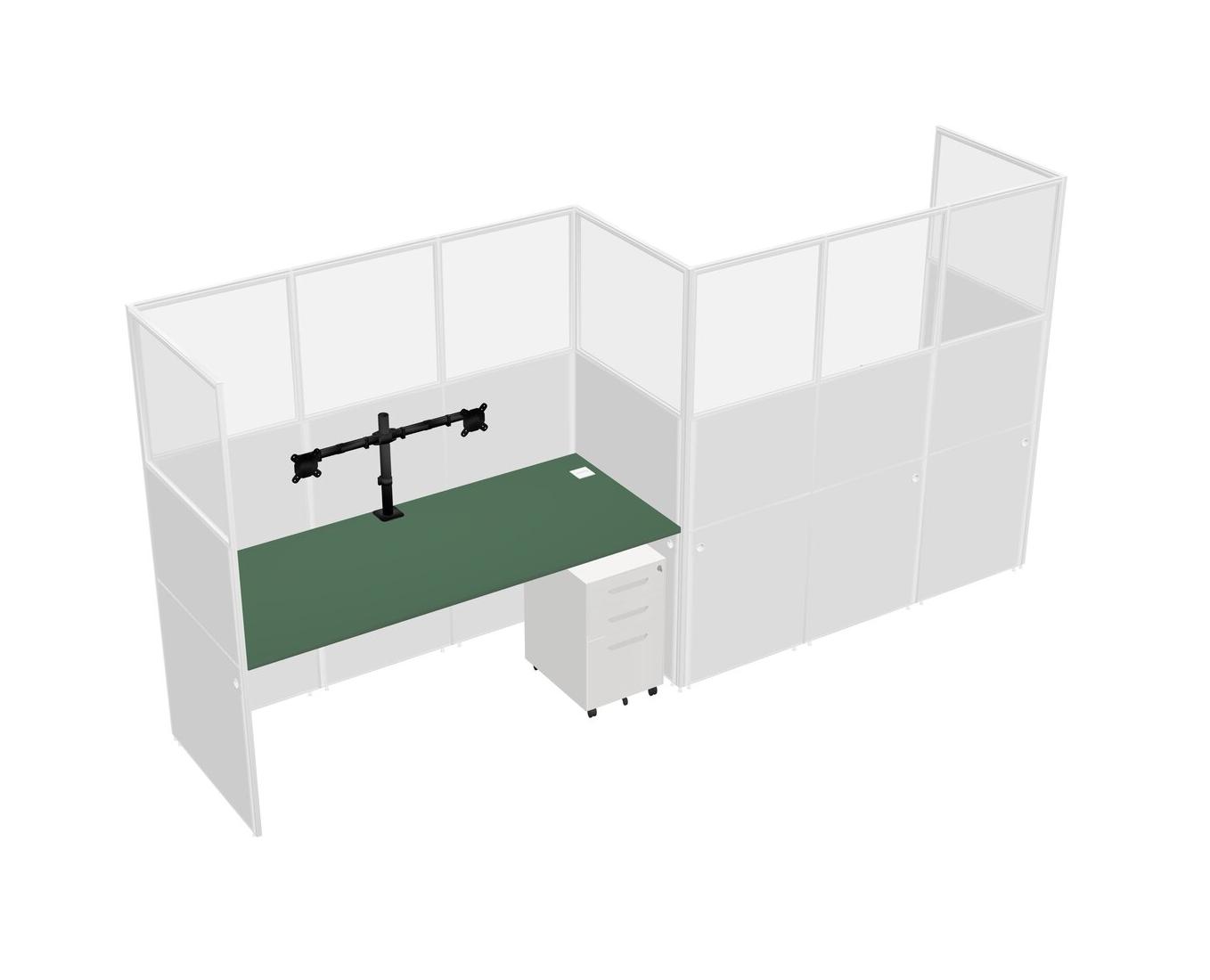 Green Rectangular Cubicle Workstations For 2 - Zigzag Formation + White Metal Mobile Drawers