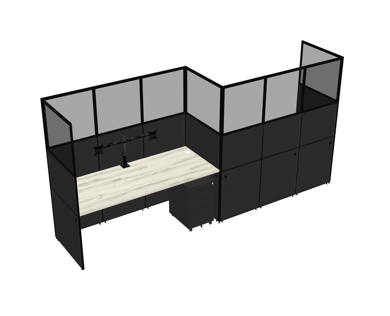Heinne Holz Rectangular Cubicle Workstations For 2 - Zigzag Formation + Black Metal Mobile Drawers