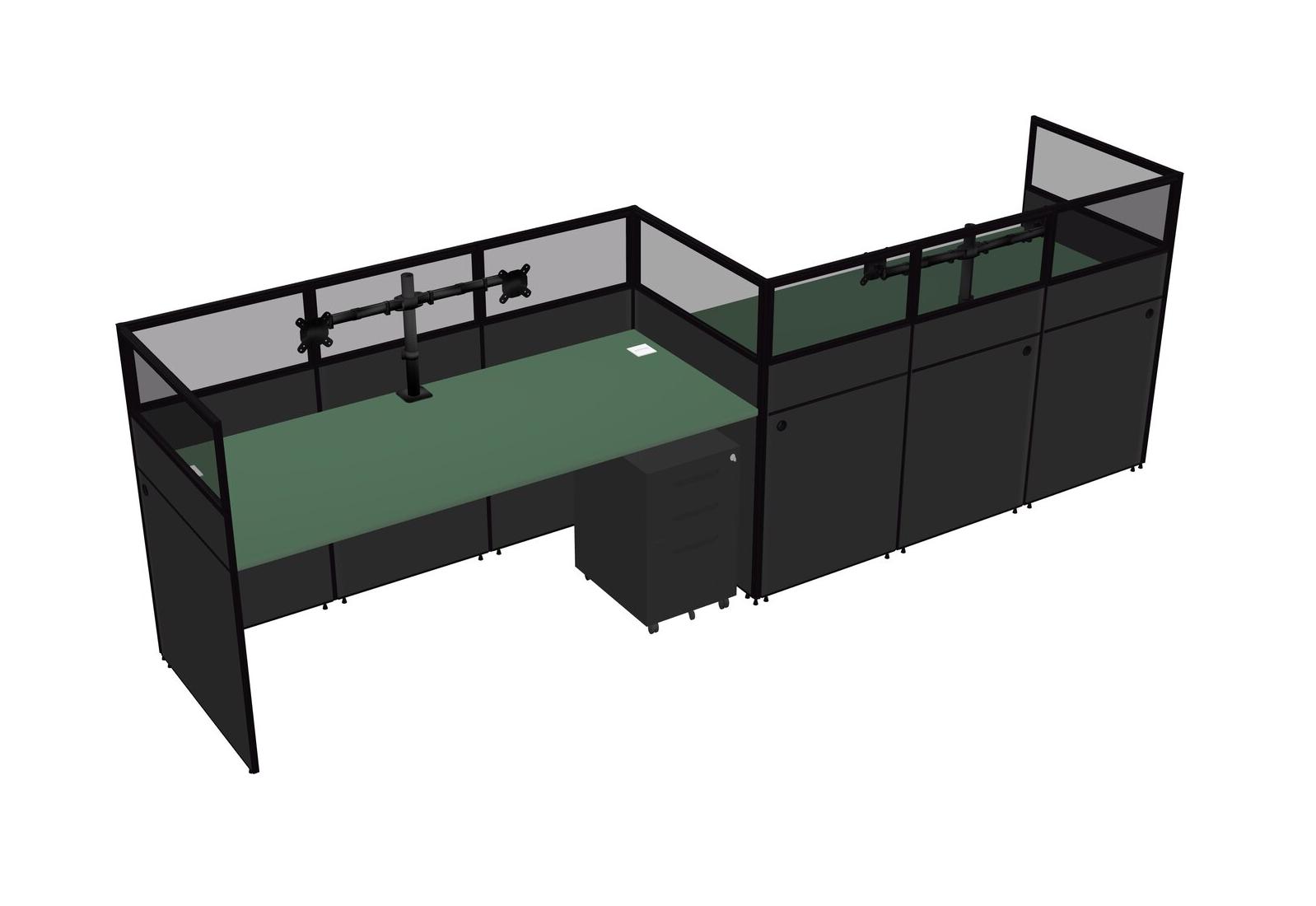 Green Rectangular Cubicle Workstations For 2 - Zigzag Formation + Black Metal Mobile Drawers