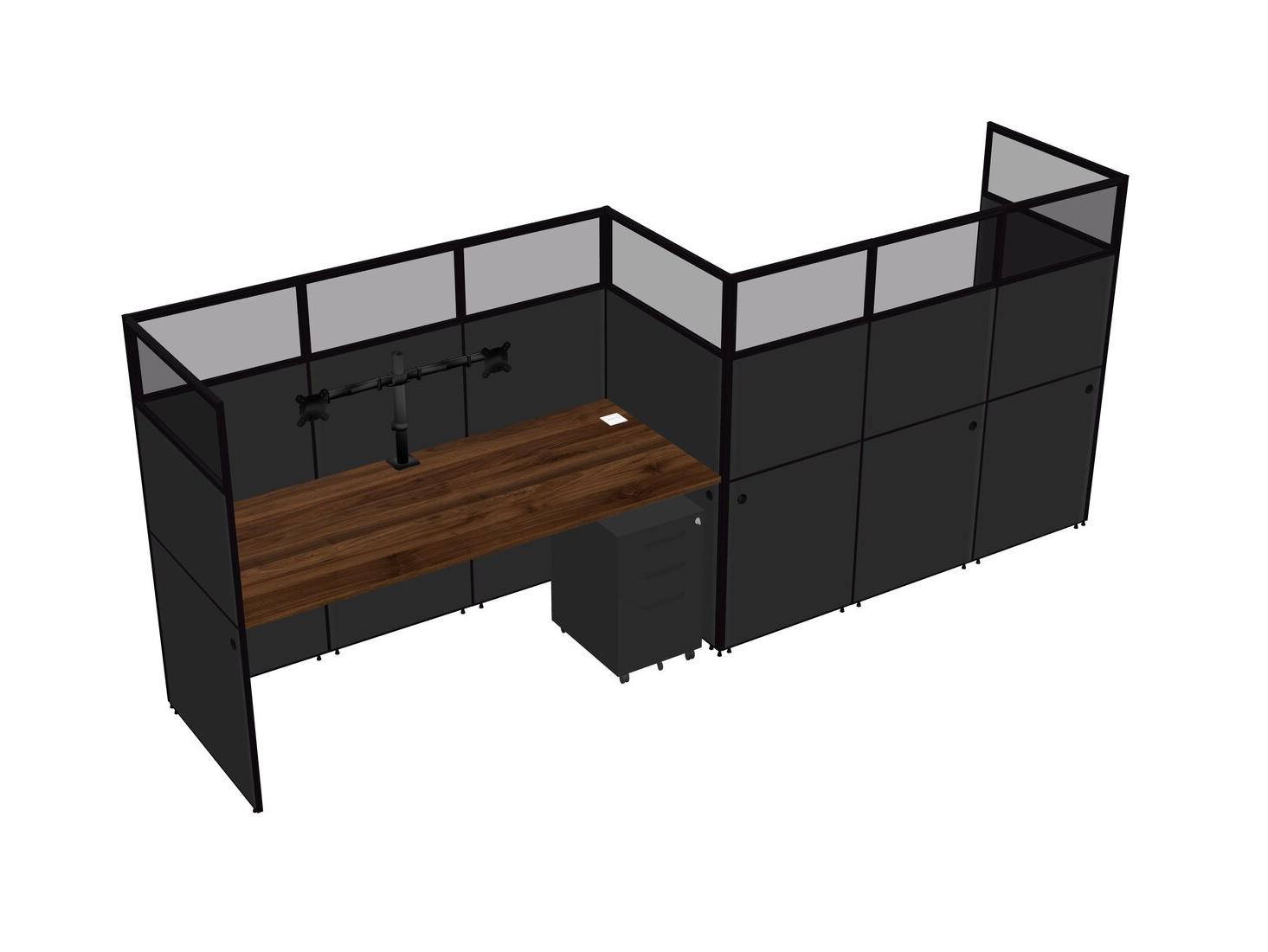 Columbia Walnut Rectangular Cubicle Workstations For 2 - Zigzag Formation + Black Metal Mobile Drawers
