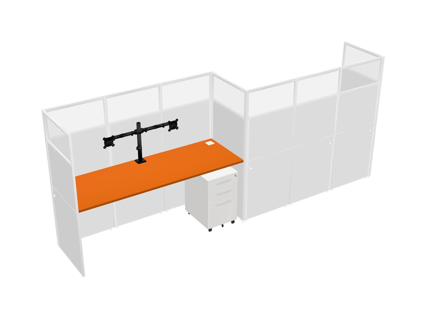 Orange Rectangular Cubicle Workstations For 2 - Zigzag Formation + White Metal Mobile Drawers