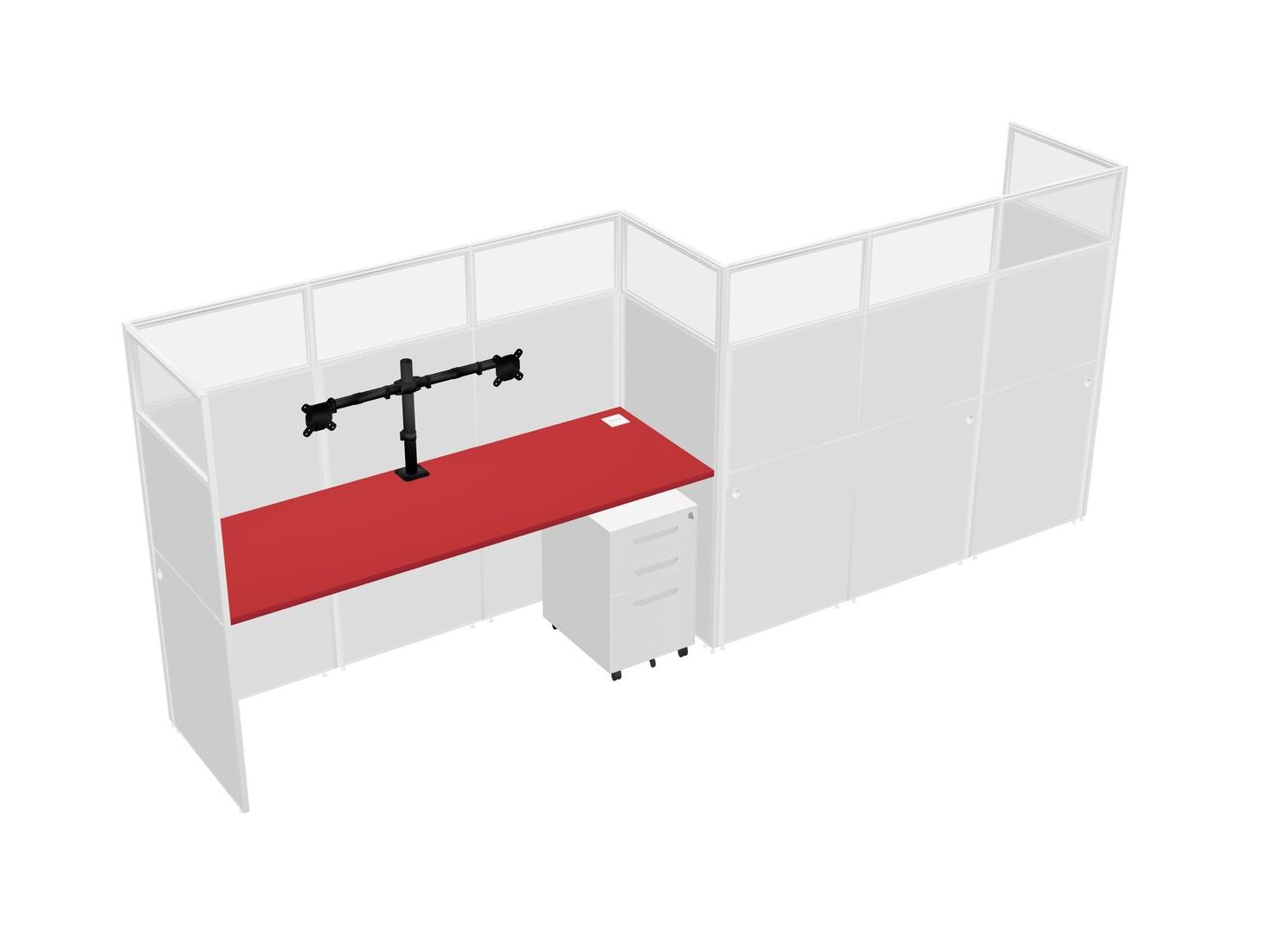 Prism Red Rectangular Cubicle Workstations For 2 - Zigzag Formation + White Metal Mobile Drawers