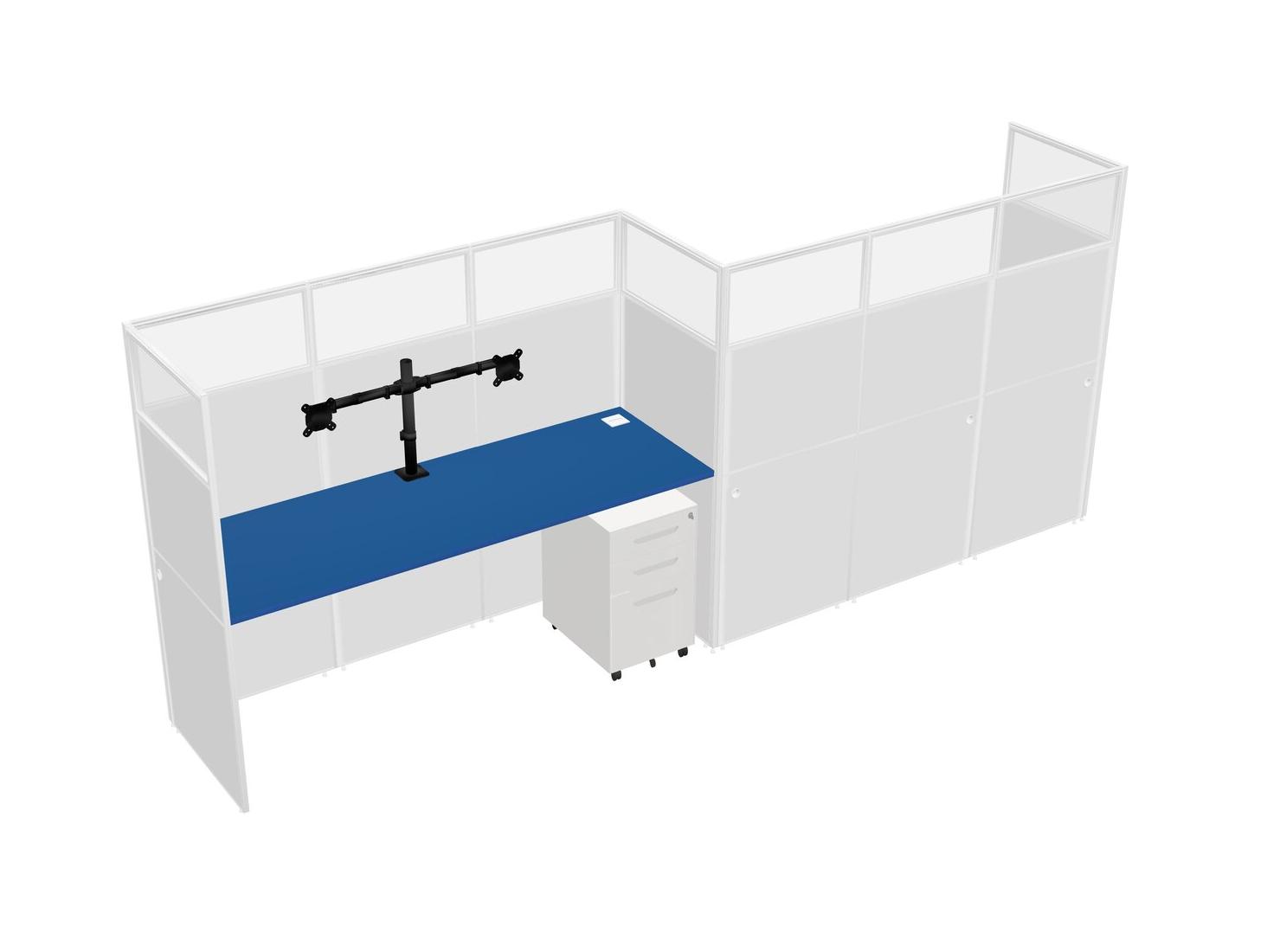 Prism Blue Rectangular Cubicle Workstations For 2 - Zigzag Formation + White Metal Mobile Drawers