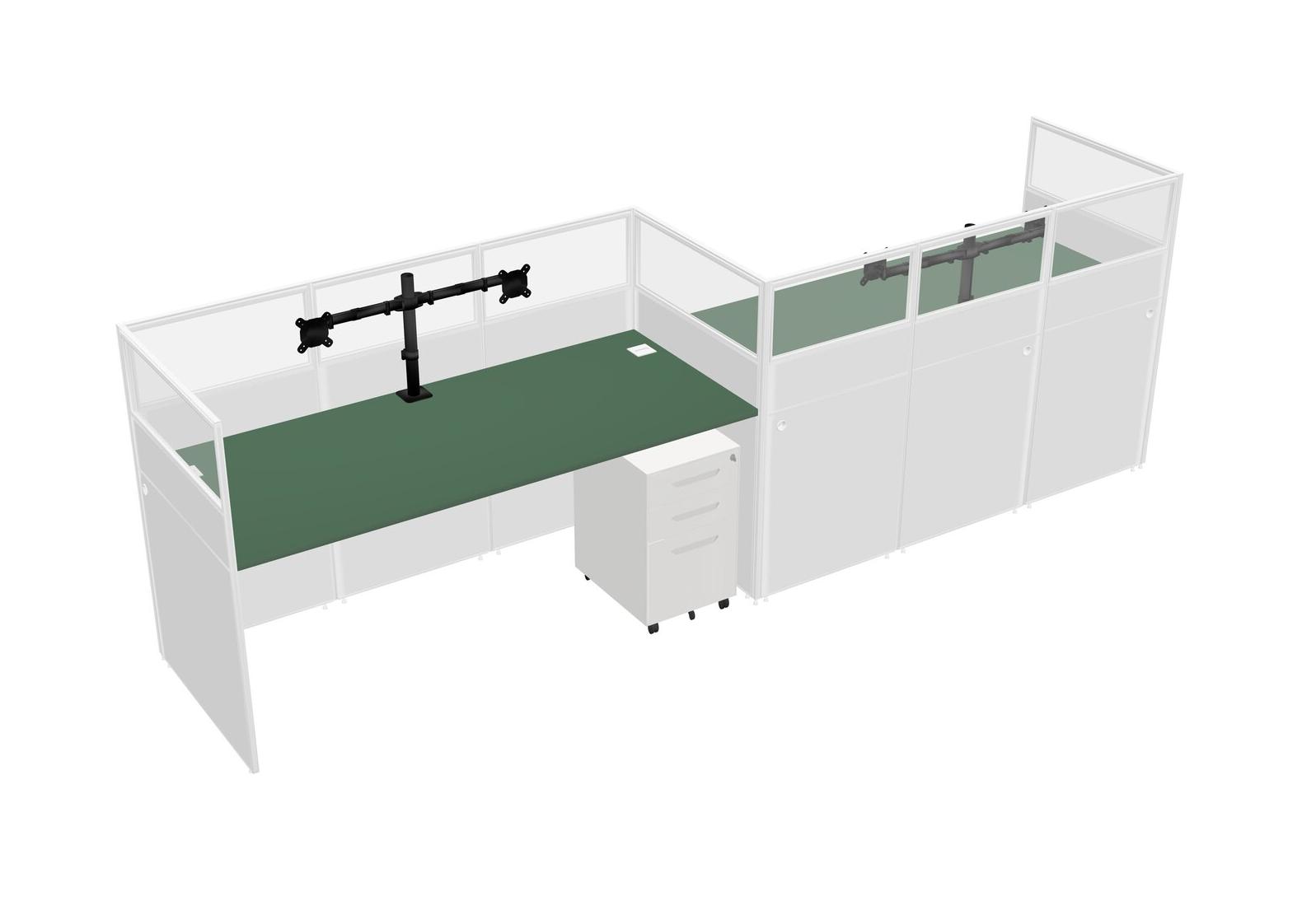 Green Rectangular Cubicle Workstations For 2 - Zigzag Formation + White Metal Mobile Drawers