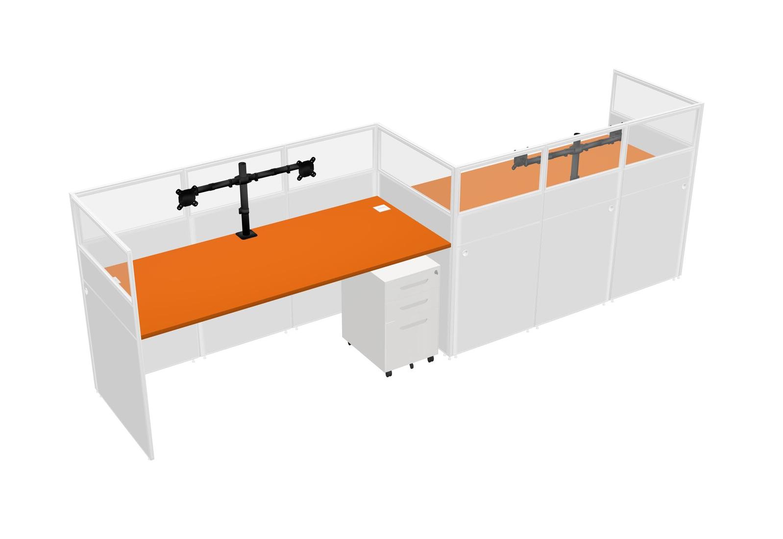 Orange Rectangular Cubicle Workstations For 2 - Zigzag Formation + White Metal Mobile Drawers