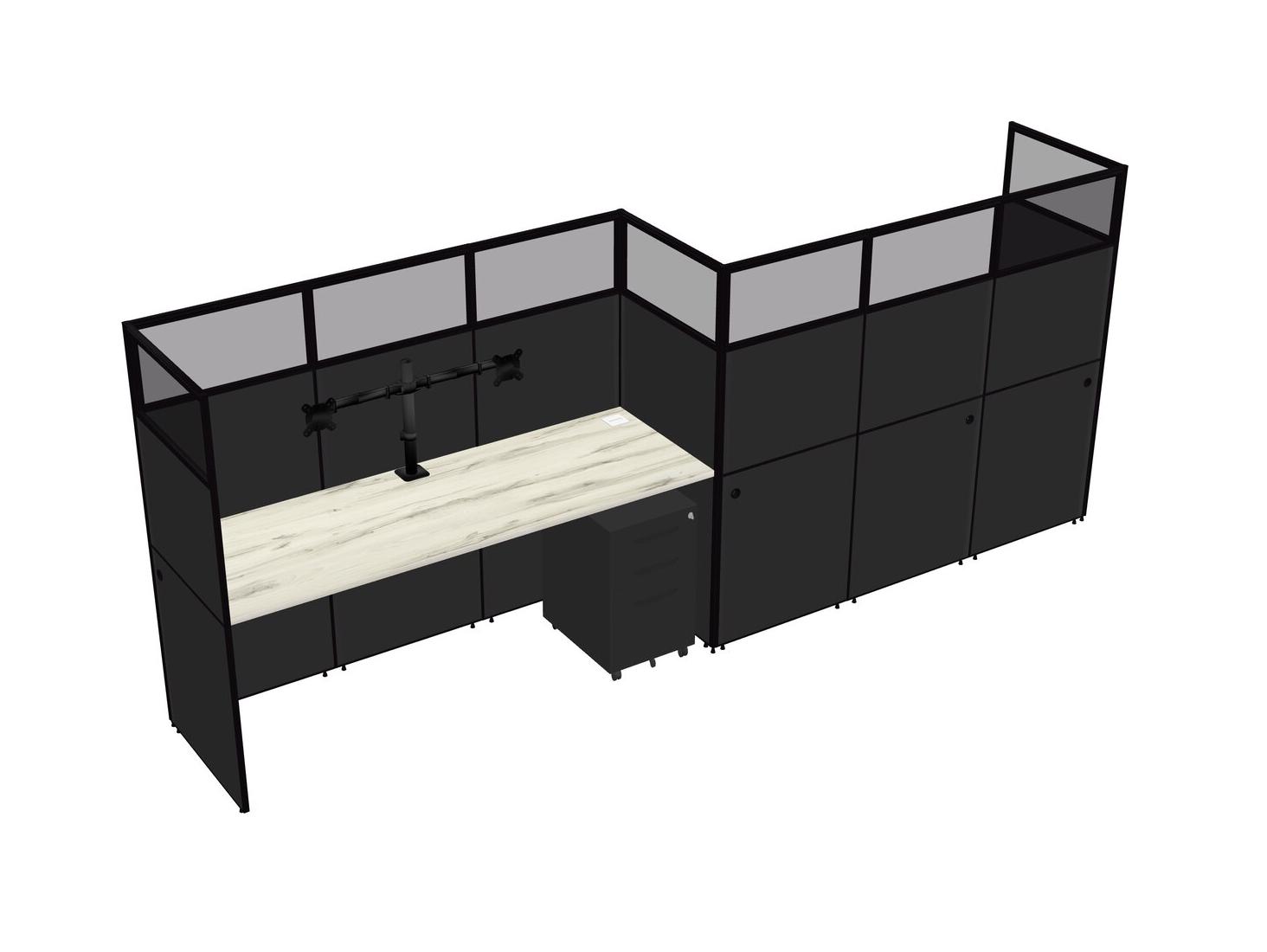 Heinne Holz Rectangular Cubicle Workstations For 2 - Zigzag Formation + Black Metal Mobile Drawers