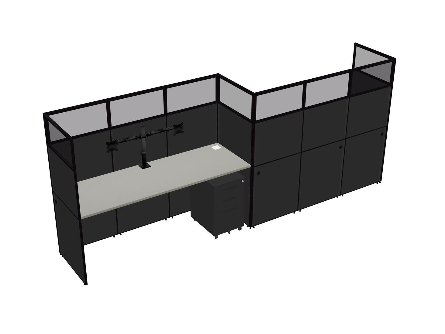 Grey Shadows Rectangular Cubicle Workstations For 2 - Zigzag Formation + Black Metal Mobile Drawers