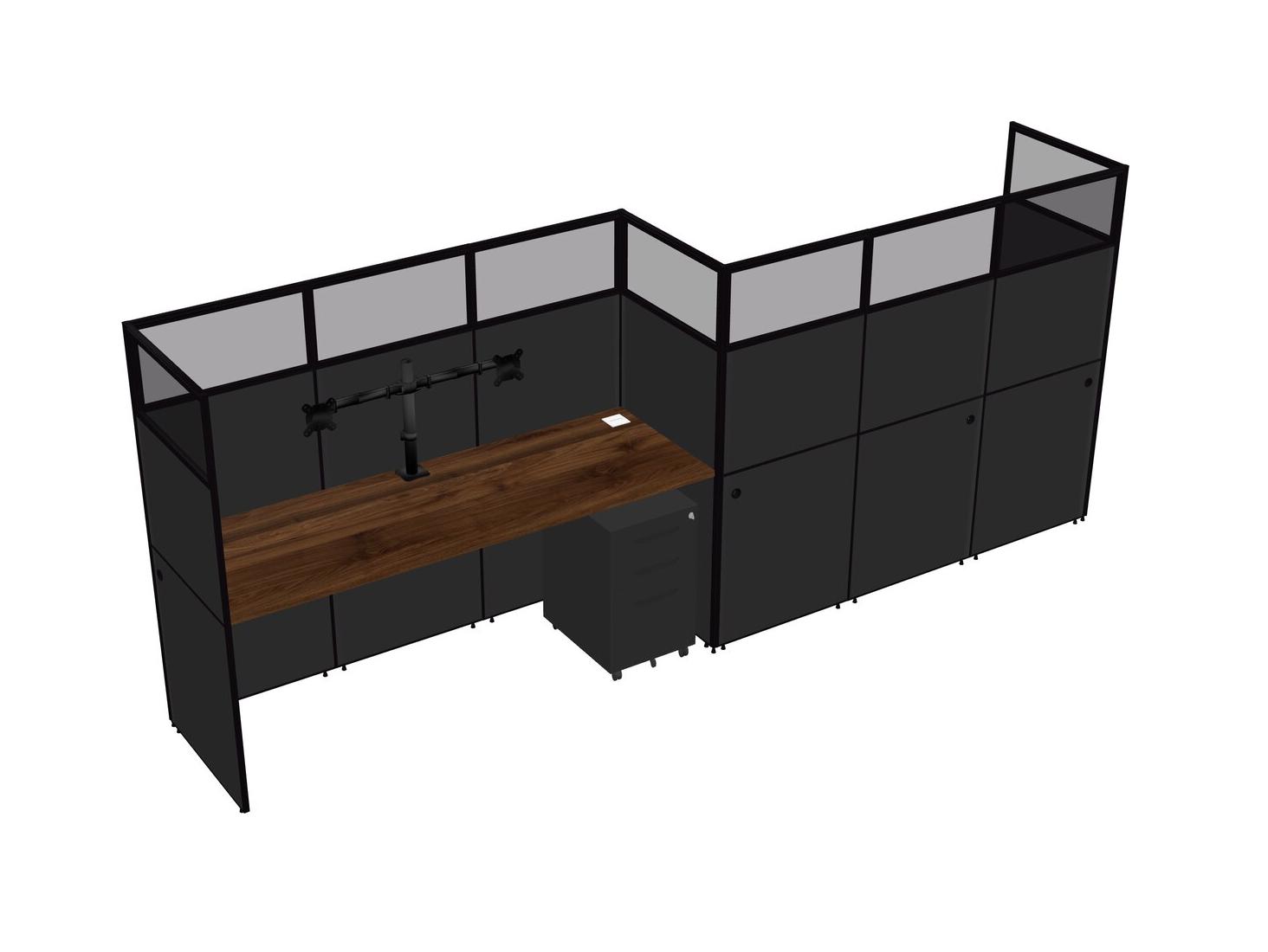 Columbia Walnut Rectangular Cubicle Workstations For 2 - Zigzag Formation + Black Metal Mobile Drawers