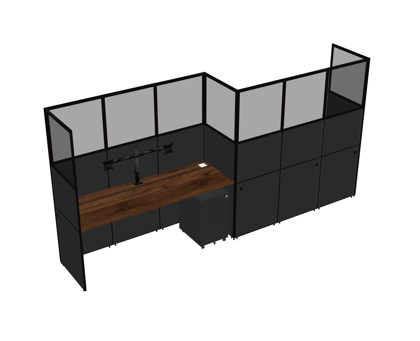 Columbia Walnut Rectangular Cubicle Workstations For 2 - Zigzag Formation + Black Metal Mobile Drawers