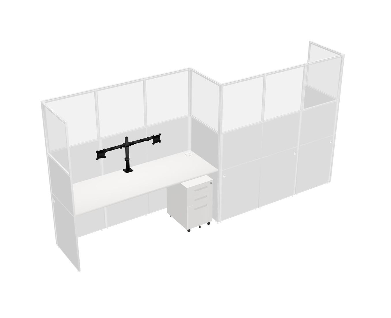 White Rectangular Cubicle Workstations For 2 - Zigzag Formation + White Metal Mobile Drawers