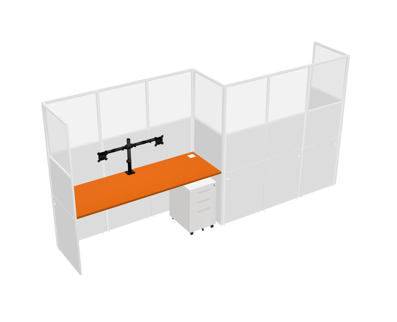 Orange Rectangular Cubicle Workstations For 2 - Zigzag Formation + White Metal Mobile Drawers