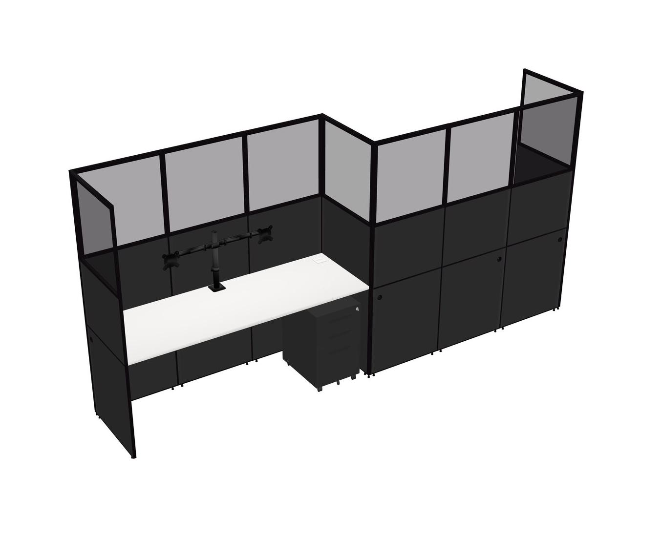 White Rectangular Cubicle Workstations For 2 - Zigzag Formation + Black Metal Mobile Drawers