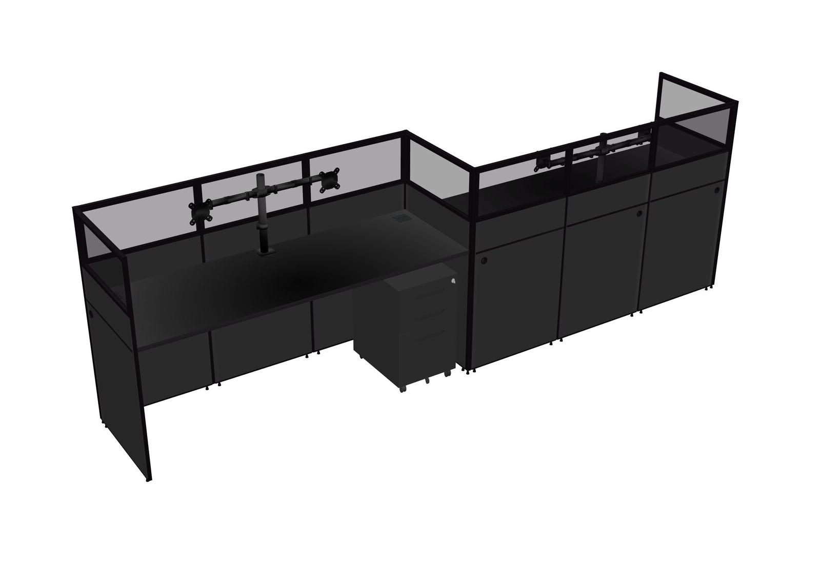 Black Rectangular Cubicle Workstations For 2 - Zigzag Formation + Black Metal Mobile Drawers