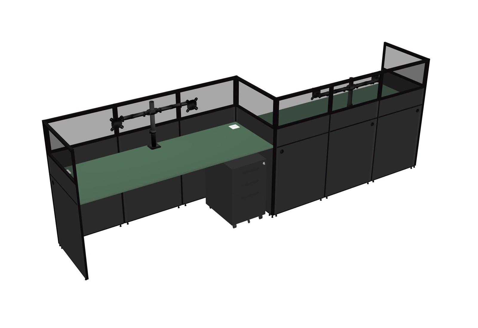 Green Rectangular Cubicle Workstations For 2 - Zigzag Formation + Black Metal Mobile Drawers