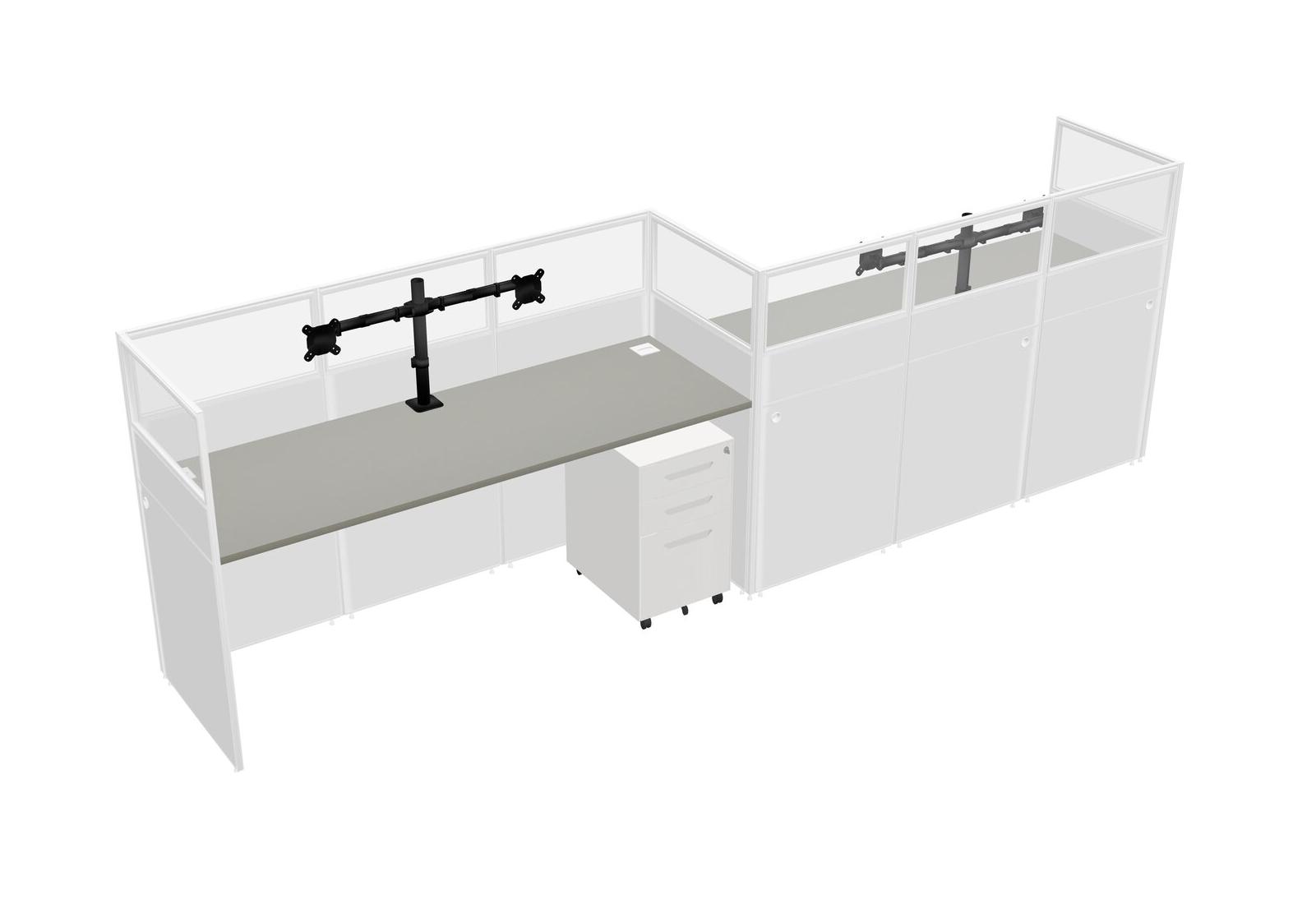 Grey Shadows Rectangular Cubicle Workstations For 2 - Zigzag Formation + White Metal Mobile Drawers