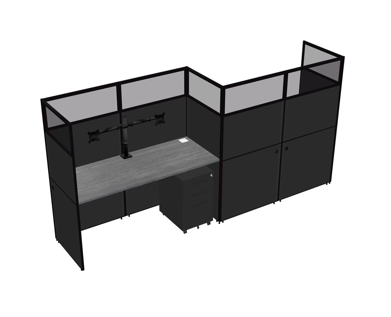 Grey Rectangular Cubicle Workstations For 2 - Zigzag Formation + Black Metal Mobile Drawers