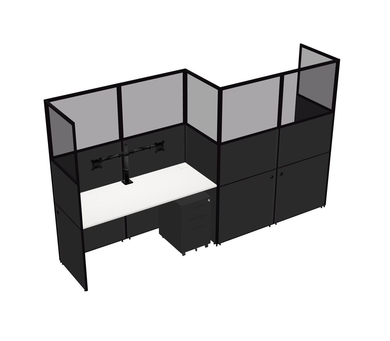 White Rectangular Cubicle Workstations For 2 - Zigzag Formation + Black Metal Mobile Drawers