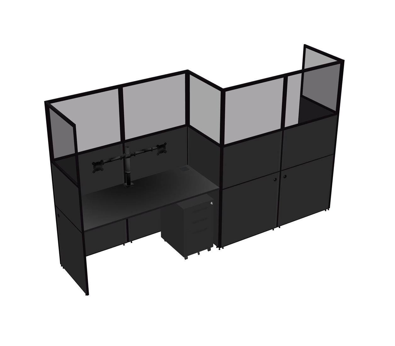 Black Rectangular Cubicle Workstations For 2 - Zigzag Formation + Black Metal Mobile Drawers