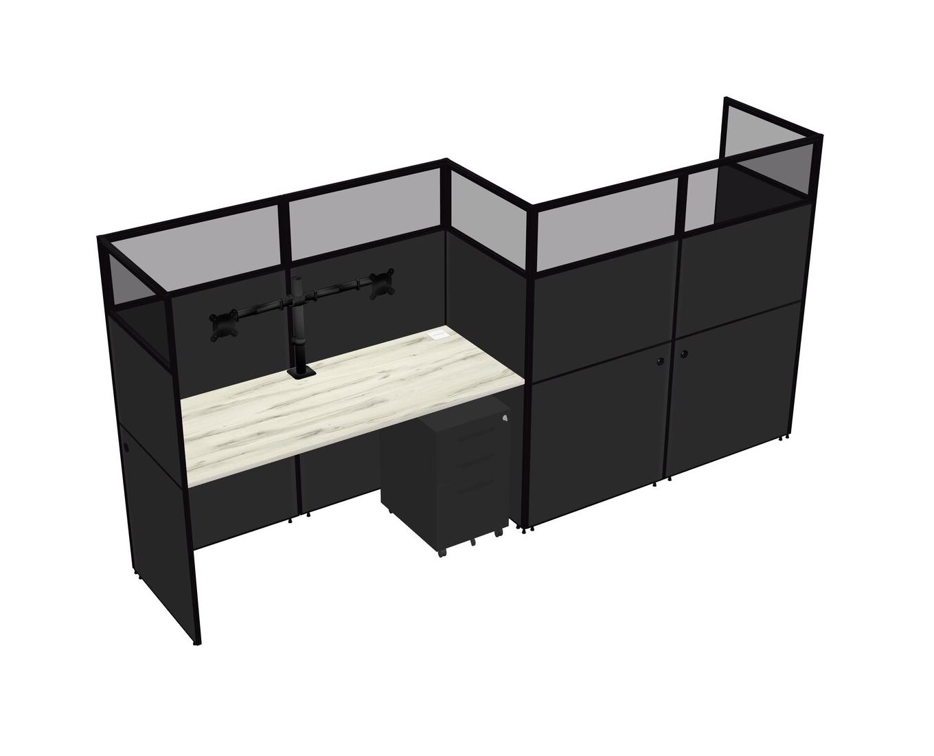 Heinne Holz Rectangular Cubicle Workstations For 2 - Zigzag Formation + Black Metal Mobile Drawers