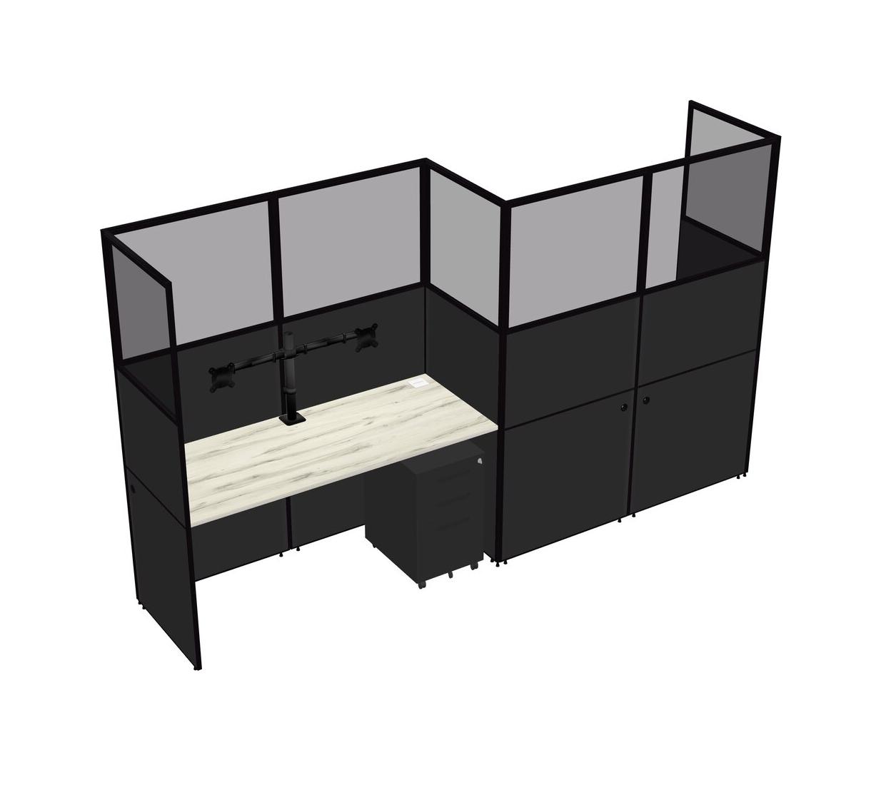 Heinne Holz Rectangular Cubicle Workstations For 2 - Zigzag Formation + Black Metal Mobile Drawers