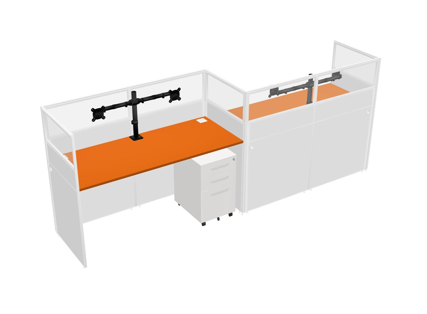 Orange Rectangular Cubicle Workstations For 2 - Zigzag Formation + White Metal Mobile Drawers