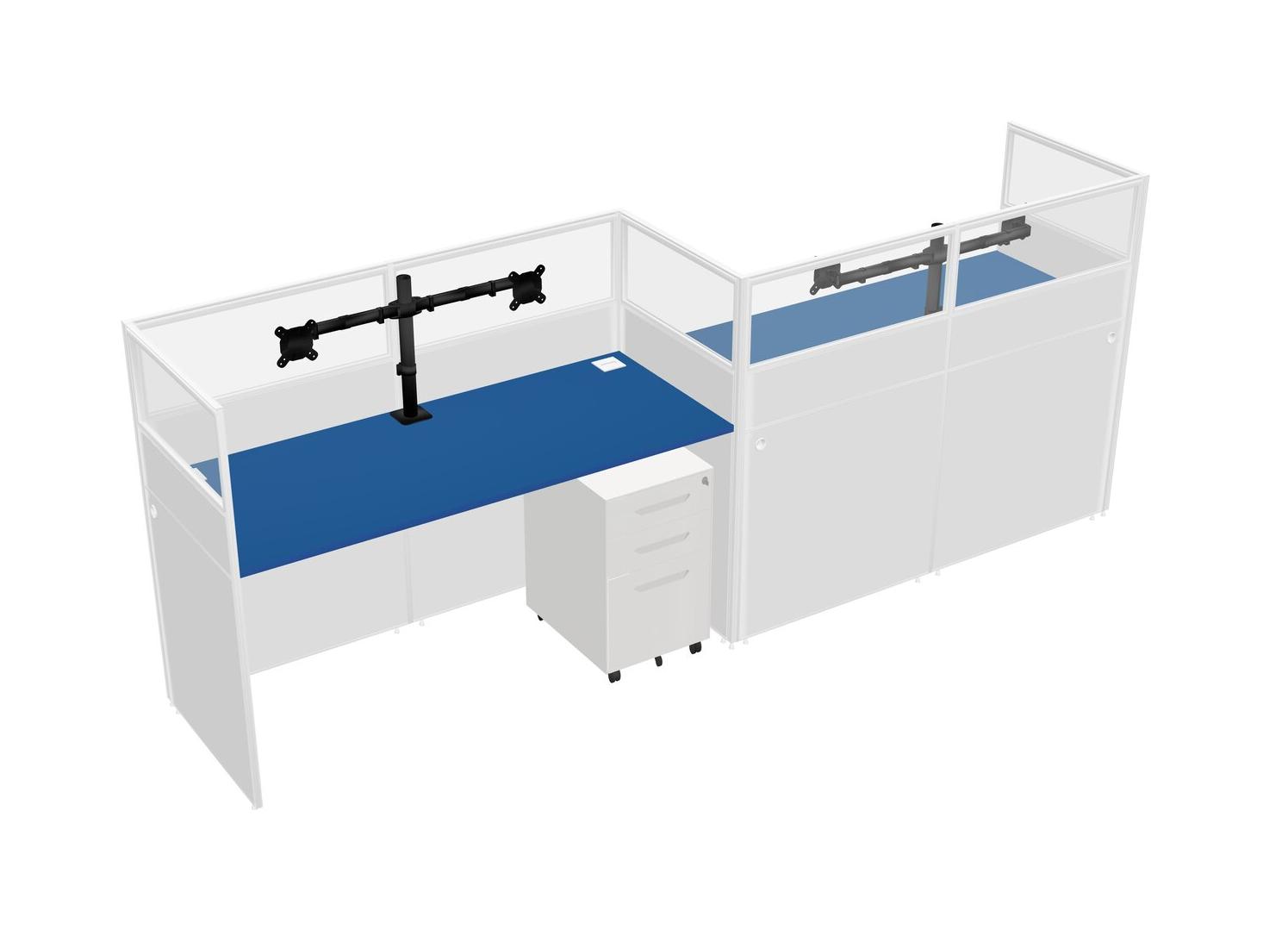 Prism Blue Rectangular Cubicle Workstations For 2 - Zigzag Formation + White Metal Mobile Drawers