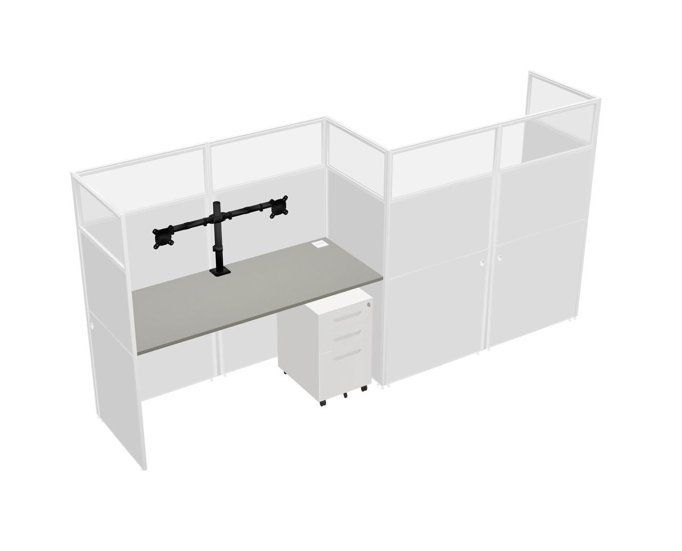Grey Shadows Rectangular Cubicle Workstations For 2 - Zigzag Formation + White Metal Mobile Drawers