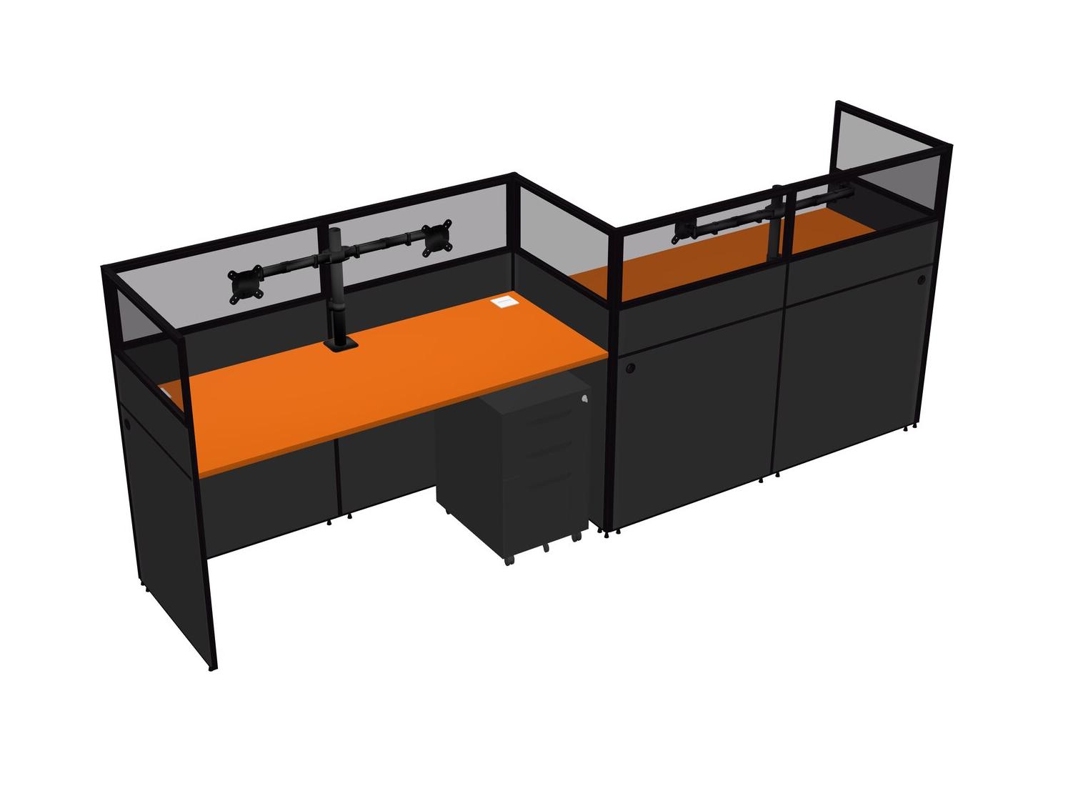 Orange Rectangular Cubicle Workstations For 2 - Zigzag Formation + Black Metal Mobile Drawers