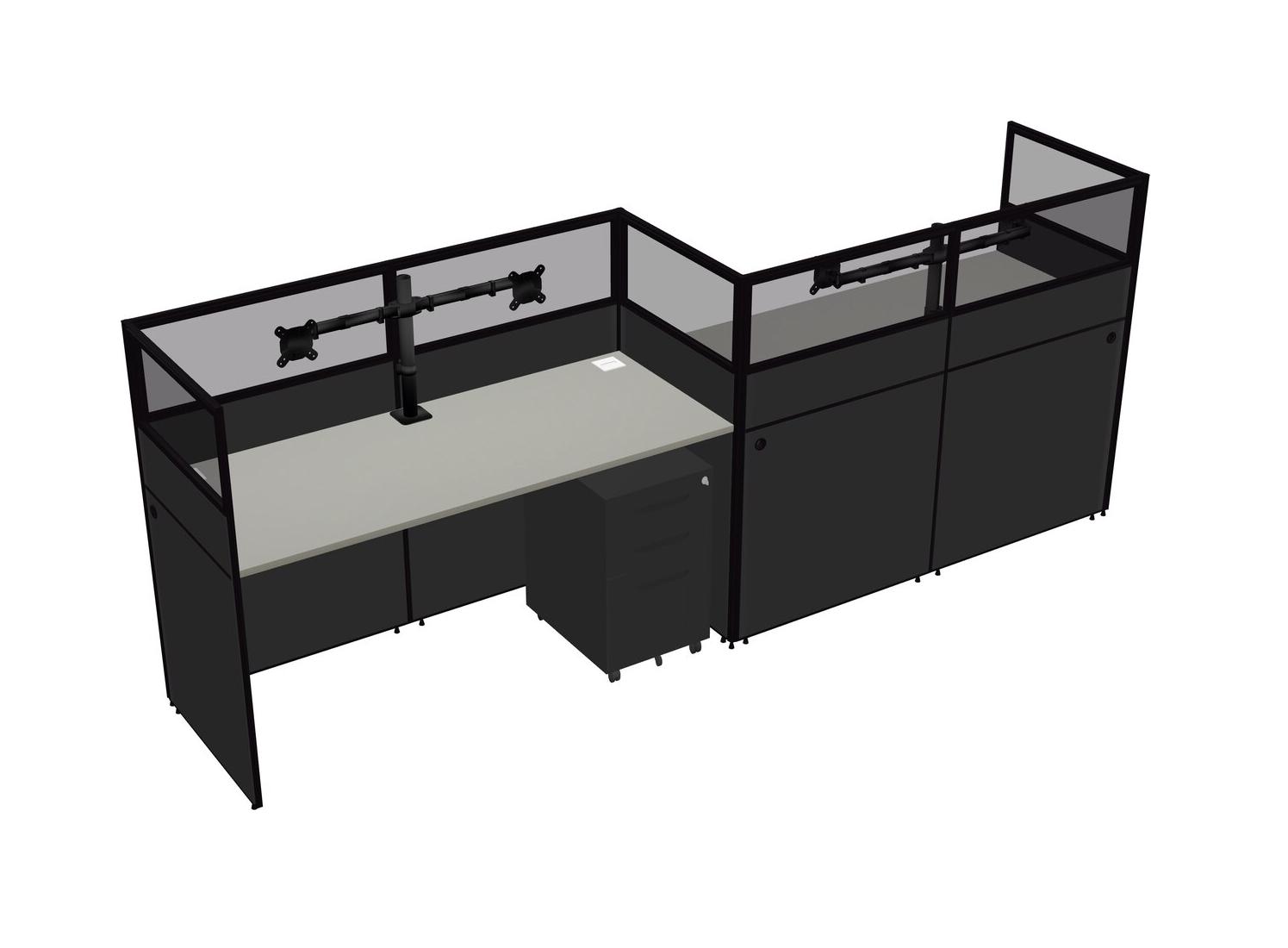 Grey Shadows Rectangular Cubicle Workstations For 2 - Zigzag Formation + Black Metal Mobile Drawers