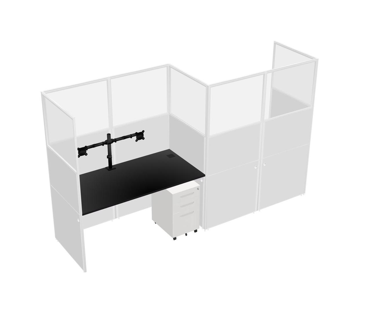 Black Rectangular Cubicle Workstations For 2 - Zigzag Formation + White Metal Mobile Drawers