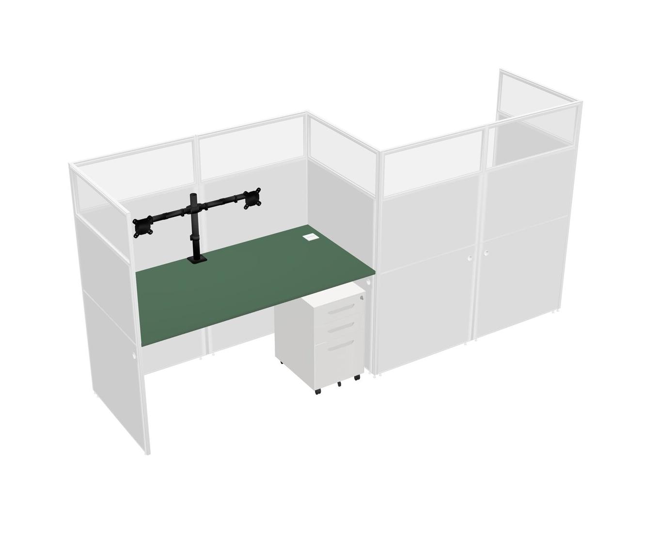Green Rectangular Cubicle Workstations For 2 - Zigzag Formation + White Metal Mobile Drawers