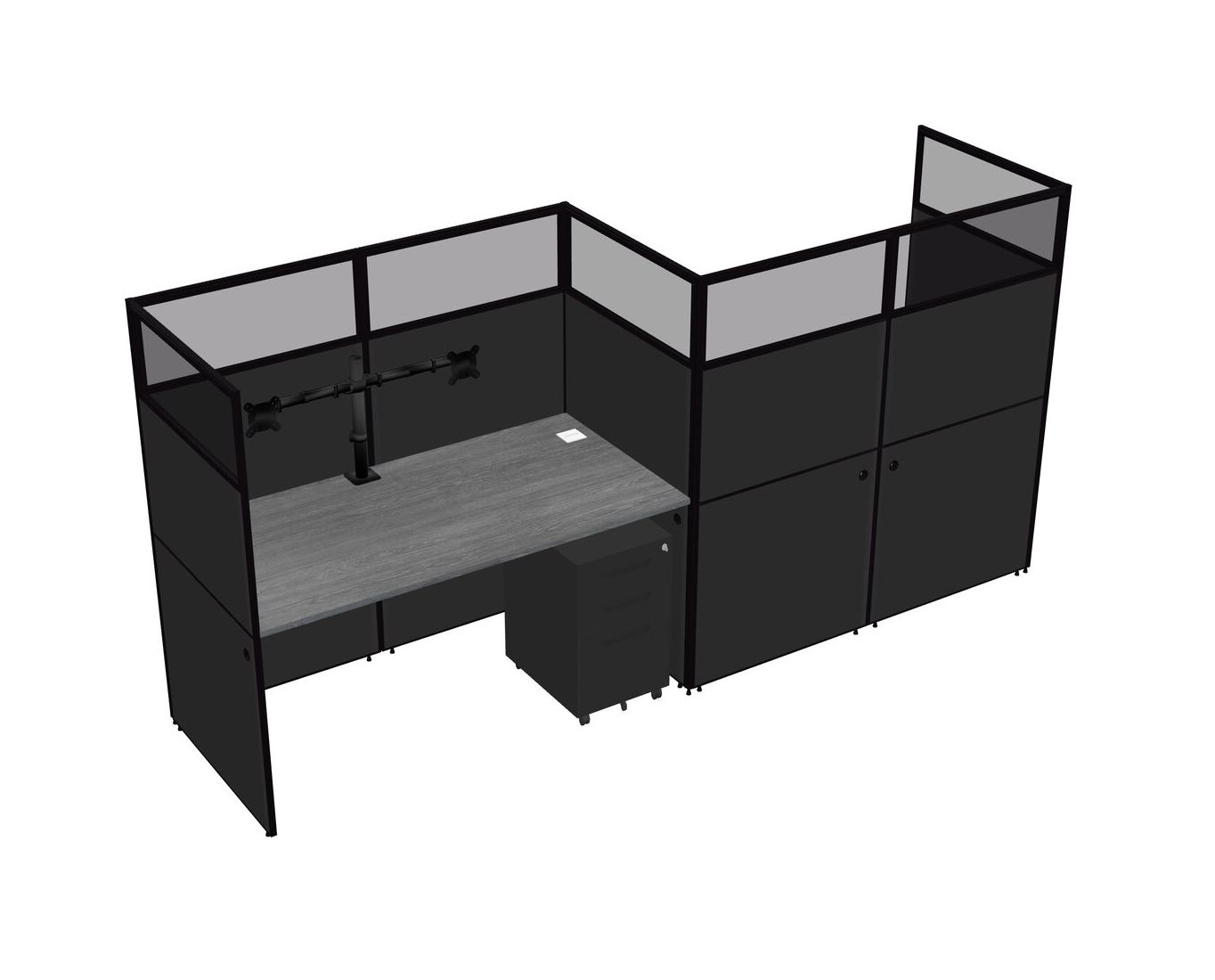 Grey Rectangular Cubicle Workstations For 2 - Zigzag Formation + Black Metal Mobile Drawers