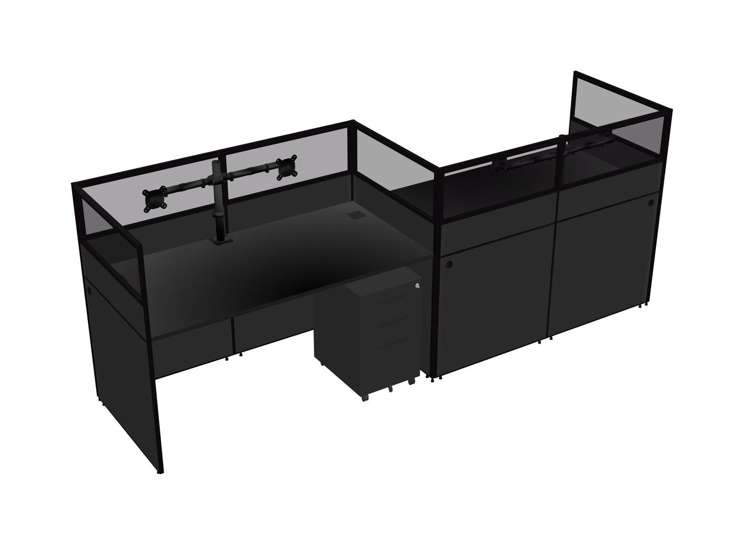 Black Rectangular Cubicle Workstations For 2 - Zigzag Formation + Black Metal Mobile Drawers