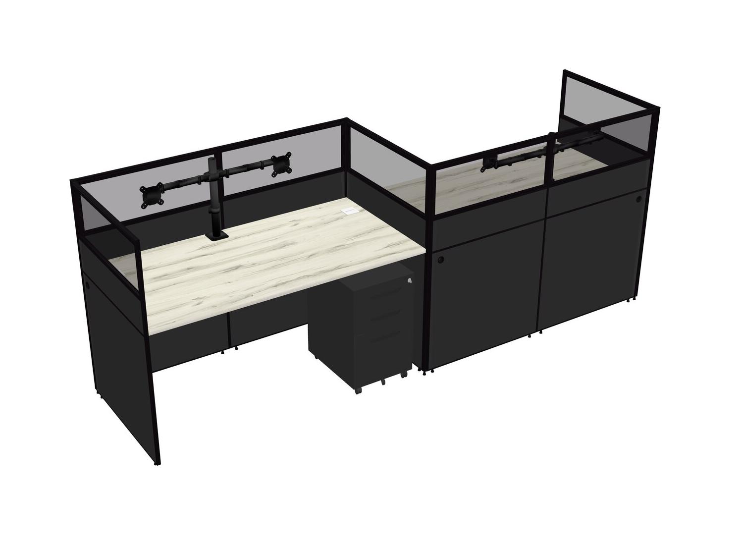 Heinne Holz Rectangular Cubicle Workstations For 2 - Zigzag Formation + Black Metal Mobile Drawers