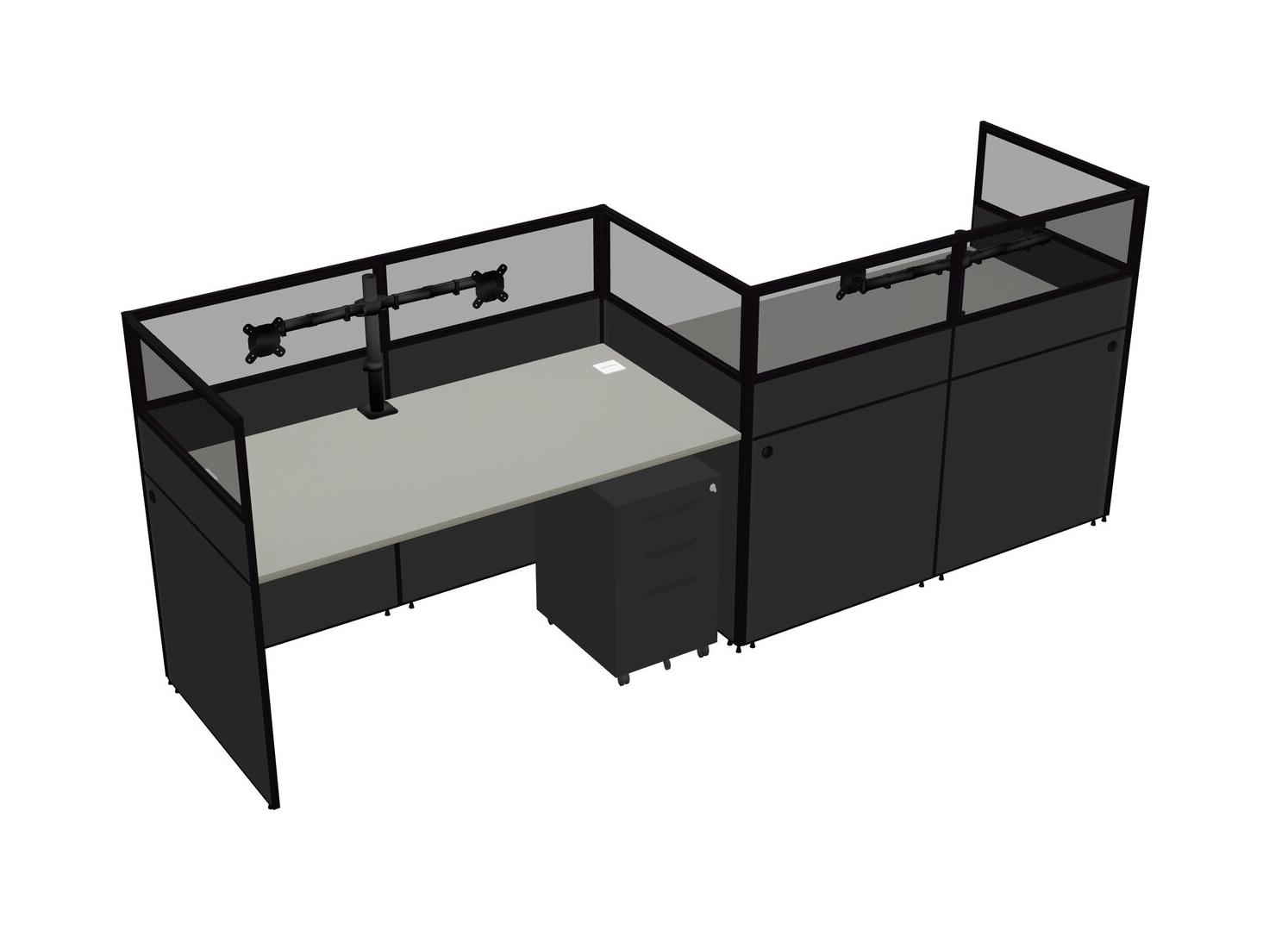Grey Shadows Rectangular Cubicle Workstations For 2 - Zigzag Formation + Black Metal Mobile Drawers