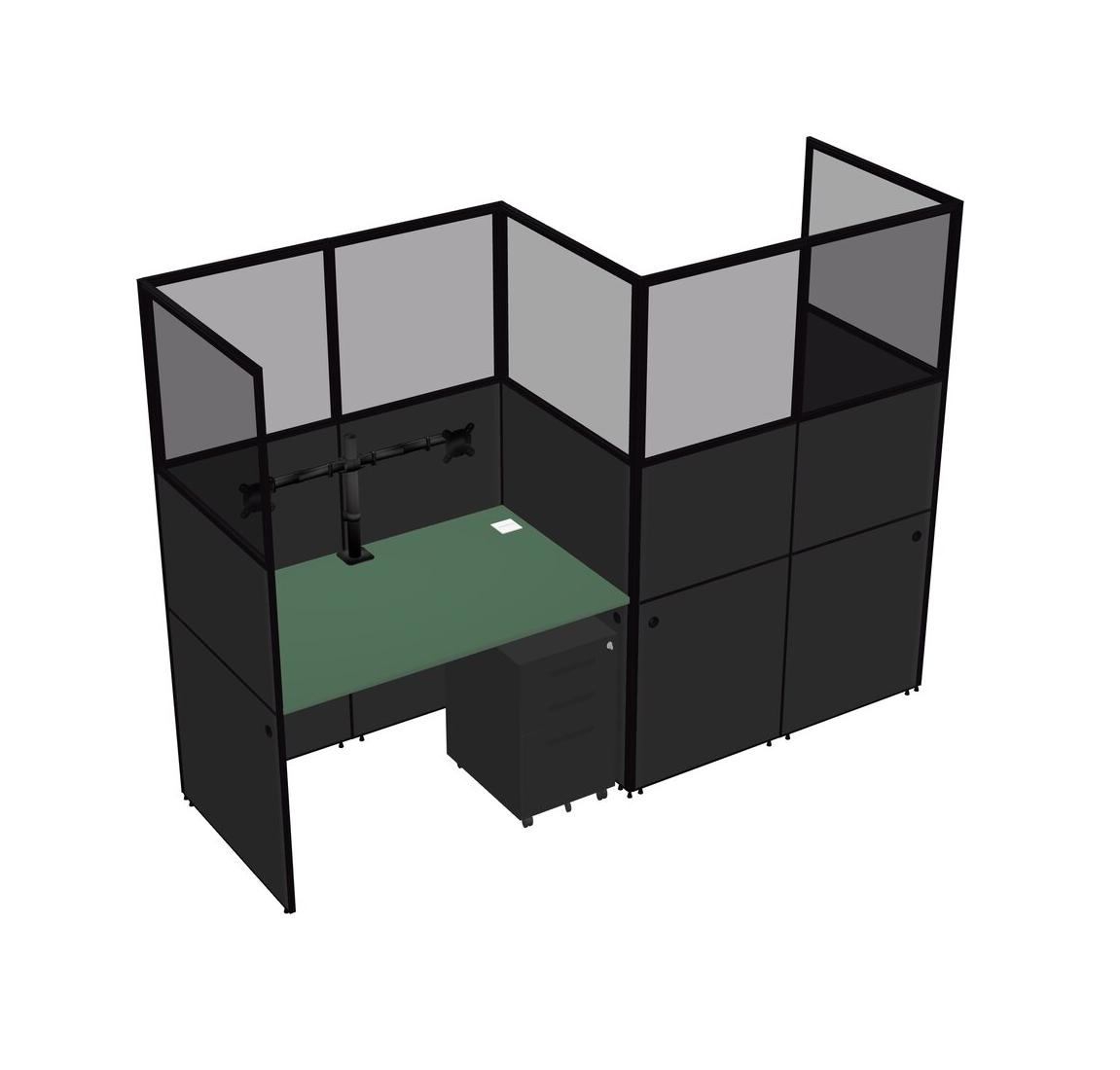 Green Rectangular Cubicle Workstations For 2 - Zigzag Formation + Black Metal Mobile Drawers