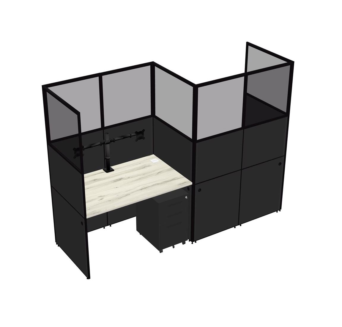 Heinne Holz Rectangular Cubicle Workstations For 2 - Zigzag Formation + Black Metal Mobile Drawers