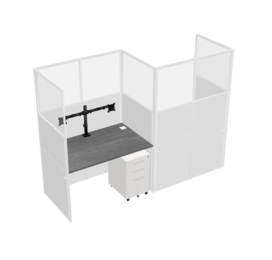 Grey Rectangular Cubicle Workstations For 2 - Zigzag Formation + White Metal Mobile Drawers