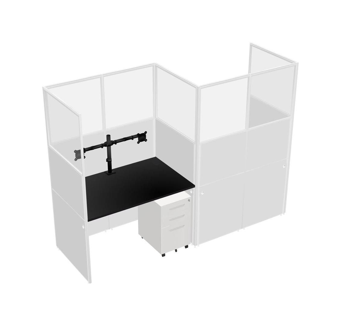 Black Rectangular Cubicle Workstations For 2 - Zigzag Formation + White Metal Mobile Drawers