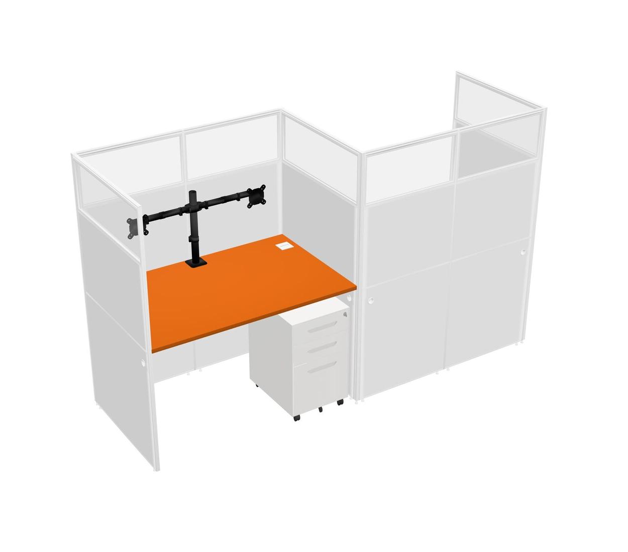Orange Rectangular Cubicle Workstations For 2 - Zigzag Formation + White Metal Mobile Drawers