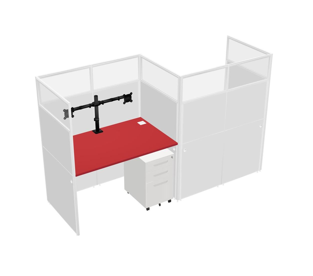 Prism Red Rectangular Cubicle Workstations For 2 - Zigzag Formation + White Metal Mobile Drawers