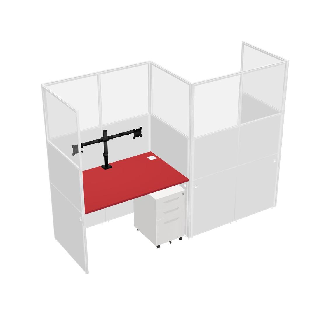 Prism Red Rectangular Cubicle Workstations For 2 - Zigzag Formation + White Metal Mobile Drawers