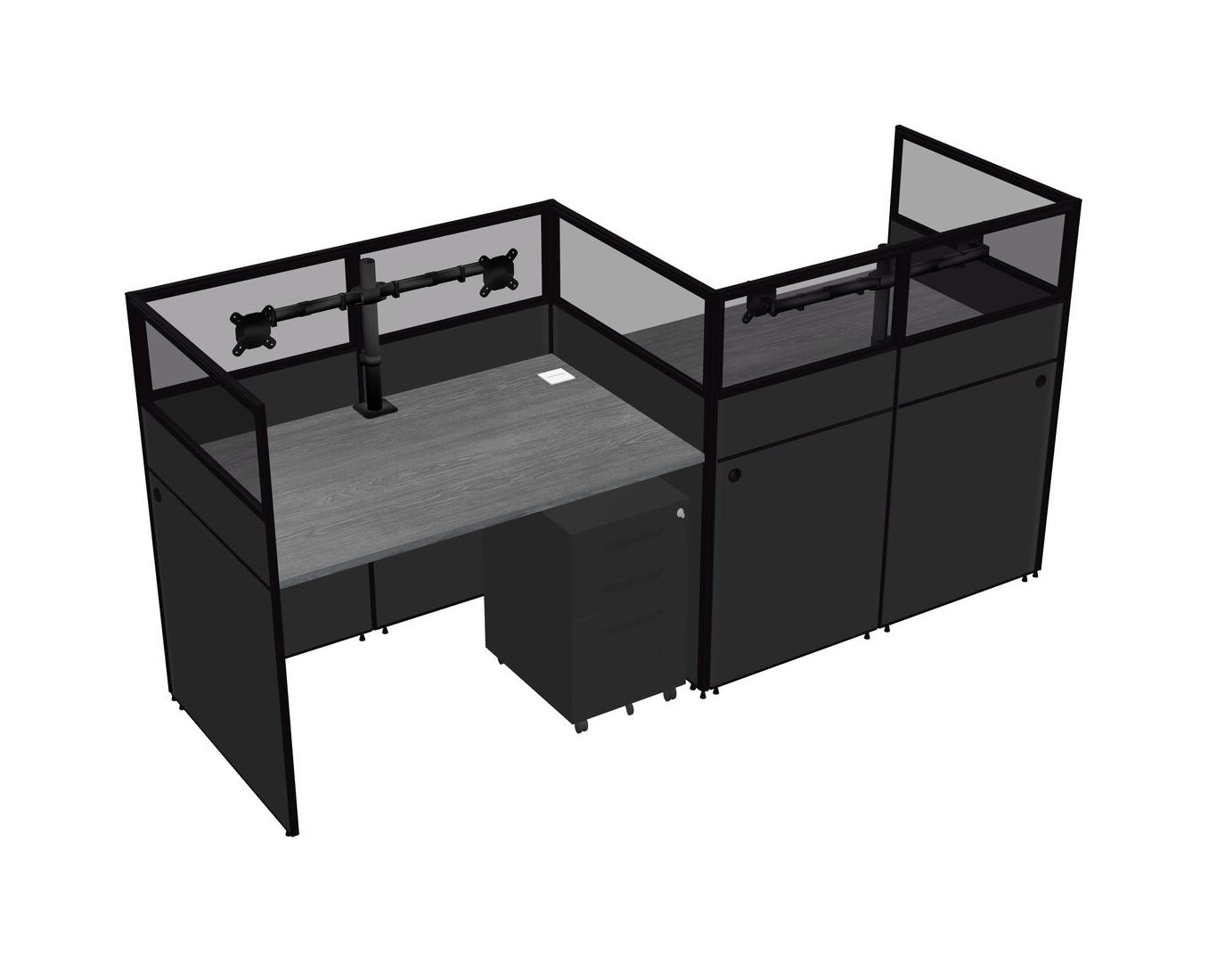 Grey Rectangular Cubicle Workstations For 2 - Zigzag Formation + Black Metal Mobile Drawers