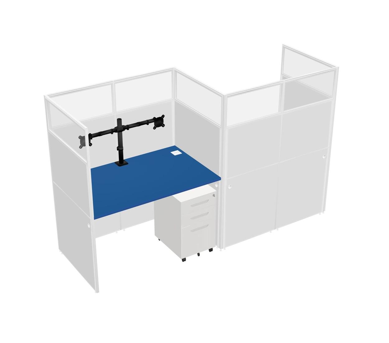 Prism Blue Rectangular Cubicle Workstations For 2 - Zigzag Formation + White Metal Mobile Drawers