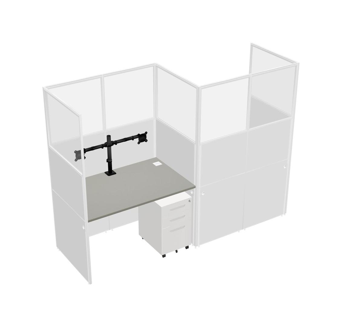 Grey Shadows Rectangular Cubicle Workstations For 2 - Zigzag Formation + White Metal Mobile Drawers