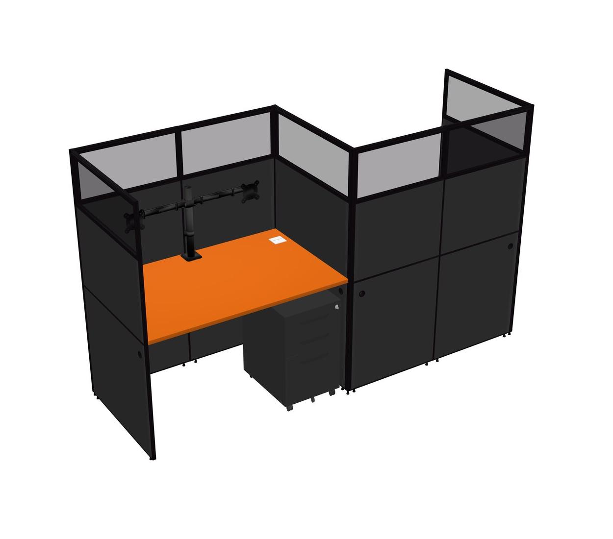 Orange Rectangular Cubicle Workstations For 2 - Zigzag Formation + Black Metal Mobile Drawers
