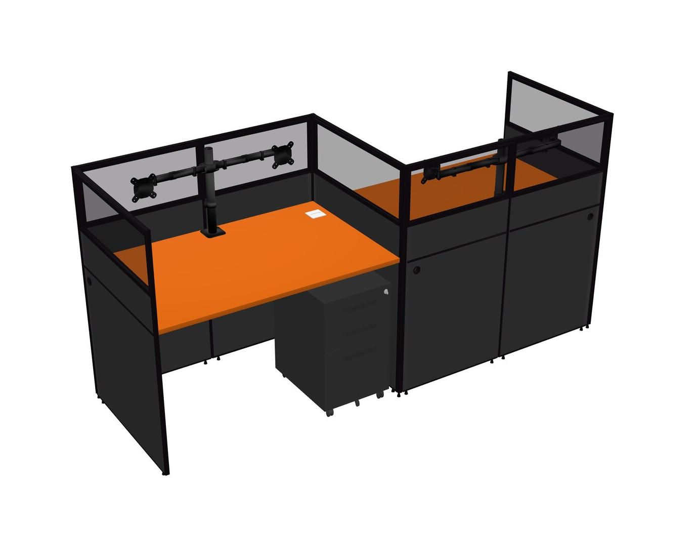 Orange Rectangular Cubicle Workstations For 2 - Zigzag Formation + Black Metal Mobile Drawers